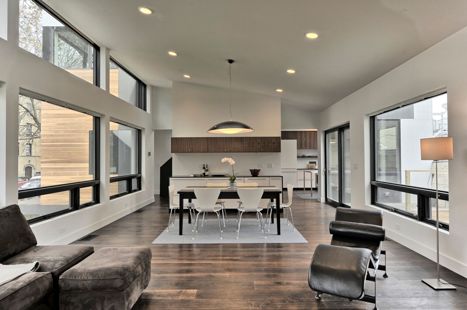 Awning windows offer an exceptional avenue for crafting imaginative and contemporary designs that grant you precise control over ventilation. These windows pivot outward from the bottom, making them a perfect element for completing both striking and purposeful stretches of expansive glass.